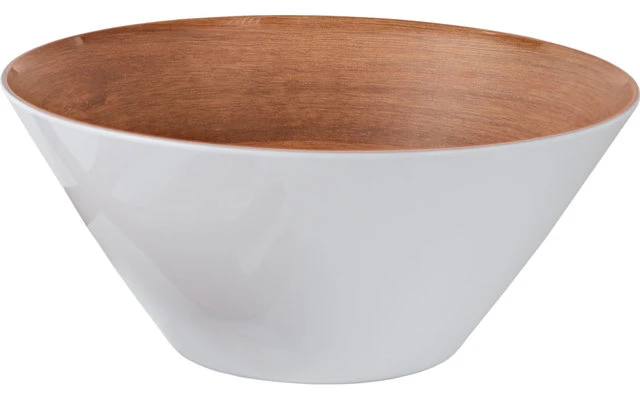 Salatschüssel in Holzoptik auf der Innenseite und weiß an der Außenseite. Material: 100% Melamin.